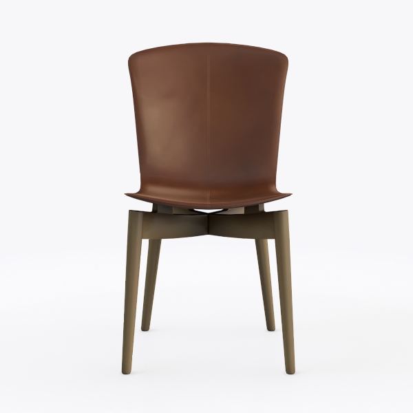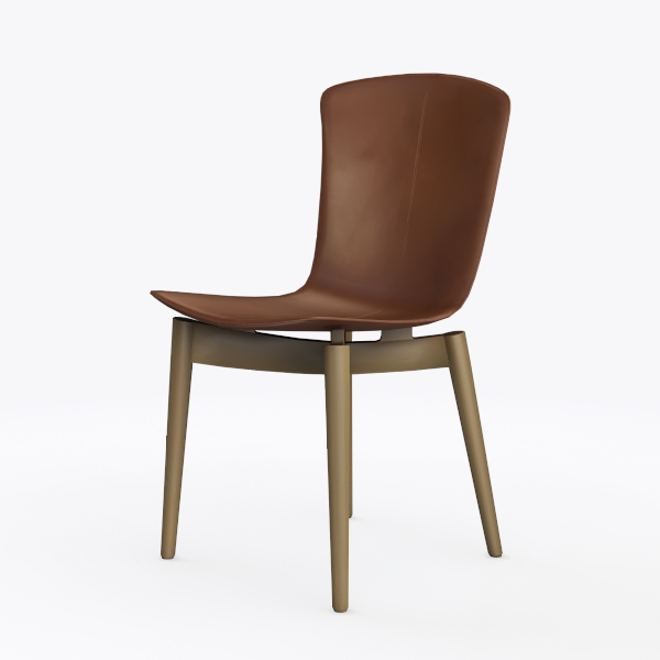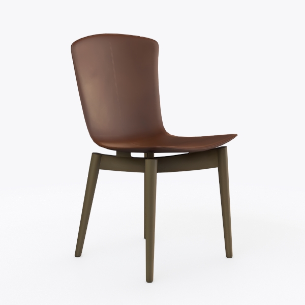 Inspired by organic curves, this chair merges soft, supple brown leather with warm, smooth wooden legs. Its sleek silhouette and contoured backrest offer both visual elegance and inviting comfort, ideal for a modern dining room or minimalist living space, pairing beautifully with marble tabletops and metallic accents.