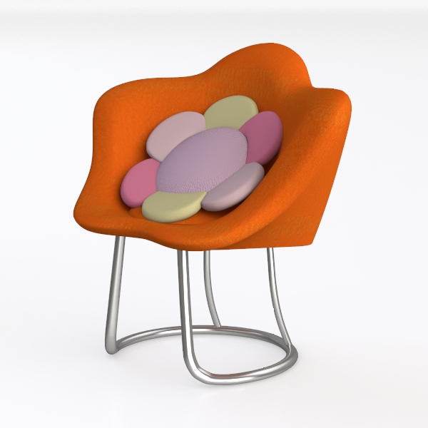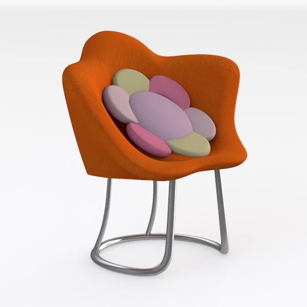 Inspired by vibrant floral patterns, this chair blends nature's softness with playful charm. Its plush orange upholstery offers a cozy touch, while layered pastel-pink, purple, and green "petals" on the back add visual depth. Ideal for a whimsical kids' room or retro pop-style nook, pairing with wooden side tables. Curved metal legs ensure stability, and the generous seat depth brings all-day comfort.