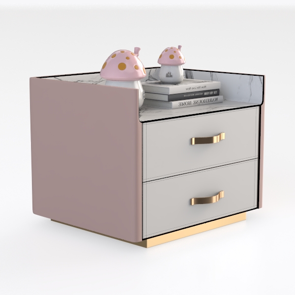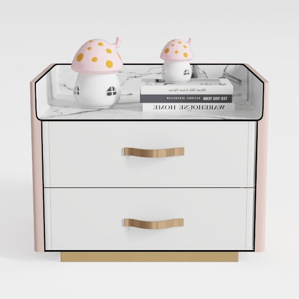 Inspired by nature's soft charm and gentle aesthetics, this nightstand features smooth white drawers, a soft pink frame, and sleek gold handles, creating a warm, cozy vibe. The marble-like top adds elegant texture, while rounded edges enhance tactile comfort. Ideal for minimalist or Scandinavian-style bedrooms, it pairs beautifully with wooden decor and soft lighting, offering ample storage with easy-to-grip handles.