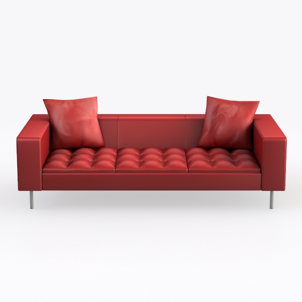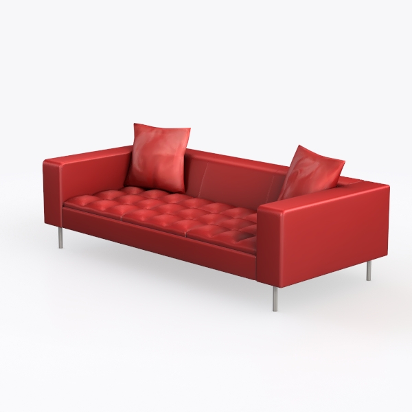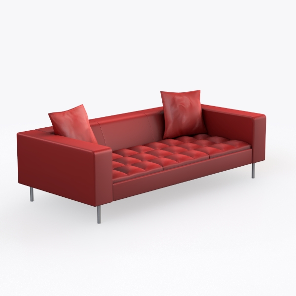 This striking sofa takes cues from mid-century modern design, merging classic simplicity with contemporary allure. Its vibrant red leather surface shimmers subtly, catching light to create a warm, inviting glow, while the delicate button-tufted pattern on the cushions adds gentle texture without clutter. The soft, high-quality leather feels smooth to the touch yet offers surprising support, with a generously deep seat that cradle the body for relaxed sitting. Tapered metal legs in a polished finish keep the piece feeling light and airy, balancing the richness of the red leather.