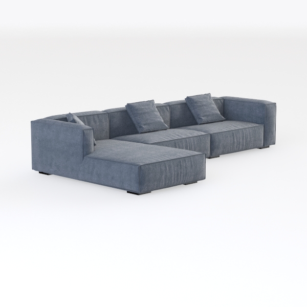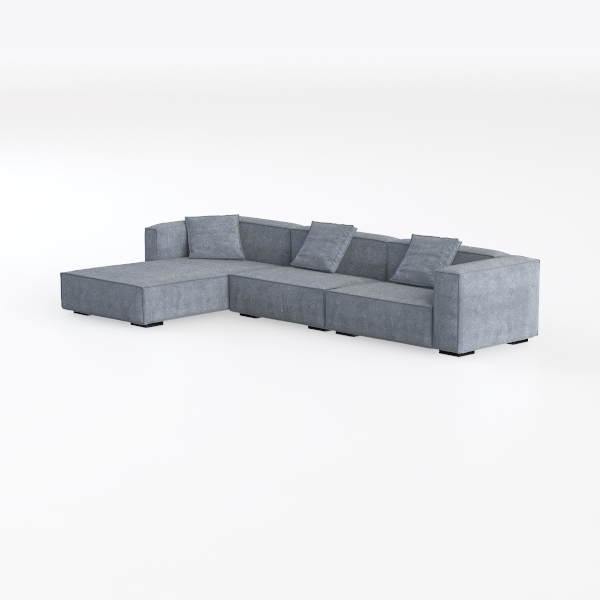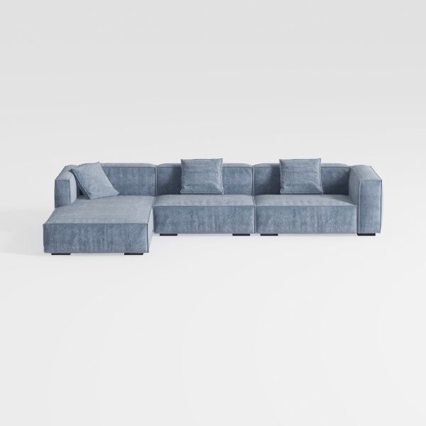 Inspired by Scandinavian minimalism, this modular sofa merges clean lines with functional elegance, prioritizing both aesthetic appeal and everyday comfort. Crafted with a soft, textured upholstery in a muted blue-gray hue, its surface feels surprisingly plush to the touch, while the angular silhouette—with gently sloping arms and a unified block design—creates a sense of calm spaciousness. The L-shape configuration offers generous seating: a deep, roomy main area perfect for curling up with a book, and a compact chaise for extended relaxation.
