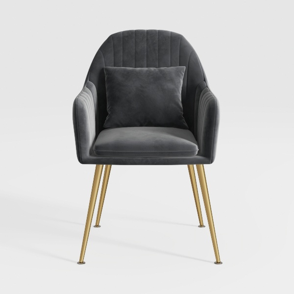 Inspired by mid-century modern design, this armchair blends classic lines with contemporary luxury. Its soft velvet upholstery feels smooth and sumptuous, while gold metal legs add a warm, polished glow, creating an elegant vibe. Ideal for a modern-luxe living room or study, pair with marble coffee tables and sleek lamps. The curved back and wide seat offer excellent support, ensuring lasting comfort.