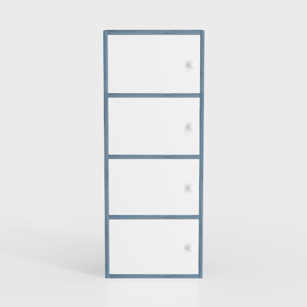 Inspired by minimalist Scandinavian design, this tall cabinet features sleek white drawers with a soft matte finish contrasting against the cool blue metal frame, creating a clean, uncluttered look. Ideal for modern minimalist living rooms, bedrooms, or home offices, pairing seamlessly with wooden side tables or marble accents. Spacious, deep drawers offer ample storage for linens, books, or small items, combining practicality with understated elegance.