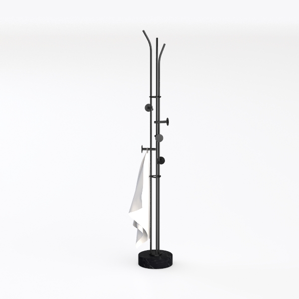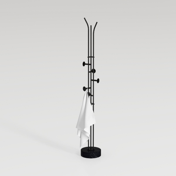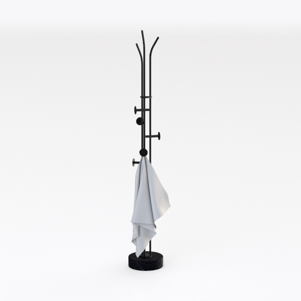 Inspired by minimalist geometry and clean lines, this freestanding organizer features a sleek matte black metal frame with curved hooks. Its smooth marble base adds warmth, contrasting cool metal with tactile richness. Perfect for modern entryways or bedrooms, pairing with neutral decor and soft textiles. Multiple hooks provide ample space for coats and bags, while the weighted base ensures stability.