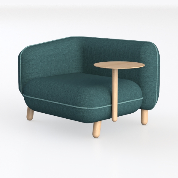 Functionality meets style here: the generous seat depth offers exceptional comfort for extended relaxation, while the integrated side table adds practicality, perfect for placing a morning coffee, a small book, or a decorative object. Supported by slim, tapered wooden legs, it maintains an airy, uncluttered presence, making it ideal for both small apartments and larger living areas where space efficiency is key.
