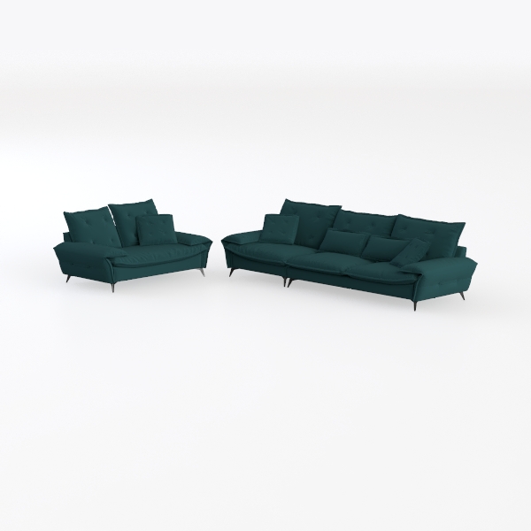 This set of deep teal sofa and armchair blends modern elegance with cozy functionality, rooted in design inspiration from organic curves and mid-century modern minimalism. The rich, velvety upholstery invites immediate tactile comfort—its deep teal hue exudes warmth and depth, catching light softly to highlight the pieces’ clean, tailored lines.