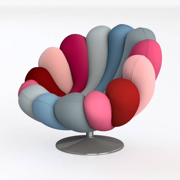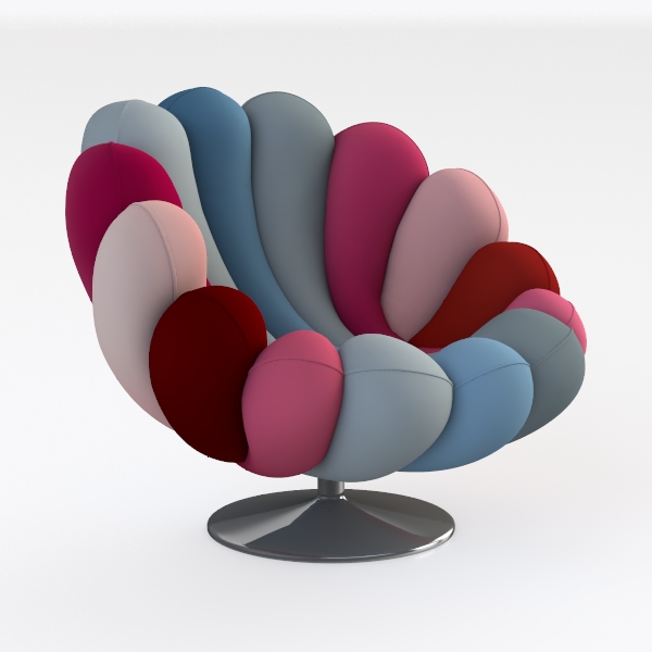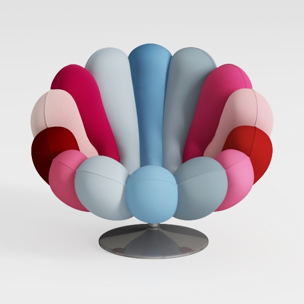 Inspired by the organic curves of seashells and vibrant floral patterns, this armchair features soft, plush upholstery in pink, blue, and gray. Its playful color blocking and smooth, rounded edges create a visually striking piece. Perfect for a lively yet sophisticated bohemian or contemporary living room, pair it with minimalist coffee tables and bold throw pillows. Generous seat depth and curved backrest cradle the body, offering exceptional comfort.