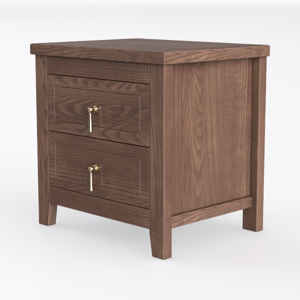 Inspired by natural wood grain and timeless Scandinavian design, this wooden nightstand features a warm, smooth texture with rich, earthy tones. Subtle brass handles add elegant accents, enhancing its inviting vibe. Ideal for modern minimalist or rustic-chic bedrooms, pair with soft linen bedding and vintage wall art. Two spacious drawers provide convenient storage, balancing functionality and understated charm.
