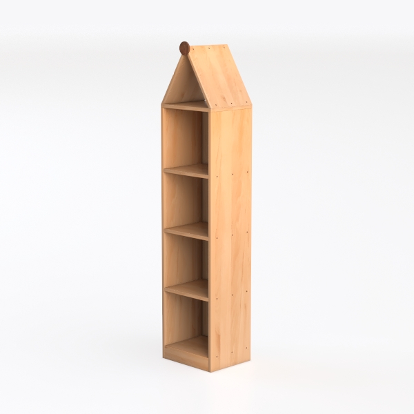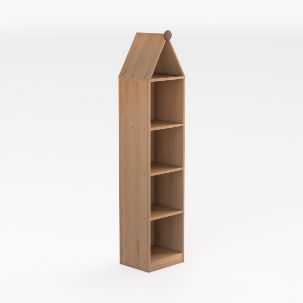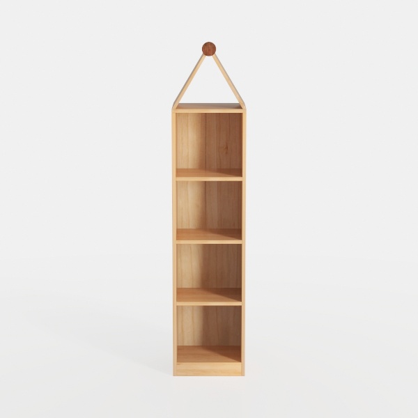 Inspired by rustic cabin charm, this tall wooden shelf features soft, natural wood texture and a smooth, tactile surface. Its vertical lines and triangular top with a wooden knob add a cozy, minimalist vibe, ideal for minimalist living rooms or home offices. Spacious shelves organize books, plants, or decor, fitting tight spaces effortlessly.