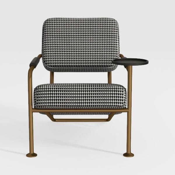 Blending timeless houndstooth patterns with sleek metal frames, this chair draws inspiration from mid-century modern design, balancing classic charm with contemporary edge. The soft, textured upholstery offers a plush feel, while matte gold legs add warm sophistication—clean lines create a striking, minimalist silhouette. Ideal for modern living rooms or studies, it pairs beautifully with marble side tables and geometric rugs, elevating spaces with understated luxury. A built-in arm tray provides handy storage for drinks or devices, and the generous seat depth ensures optimal comfort for long relaxation hours.