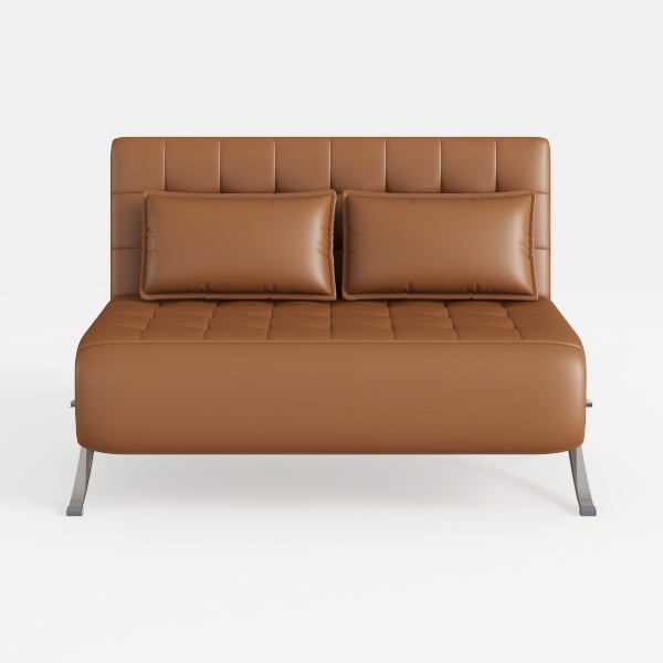 Visually, the sofa feels grounded yet light: the low-profile frame and angular metal legs (with a brushed silver finish) contribute to its sleek, uncluttered look, while the warm hue infuses any space with a sense of calm. The supple leather invites gentle contact, offering a smooth, cool sensation against the skin that contrasts beautifully with the softness of the padding.