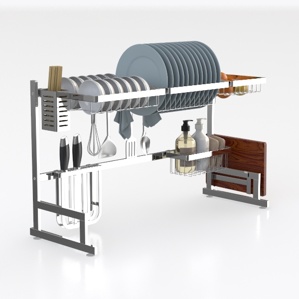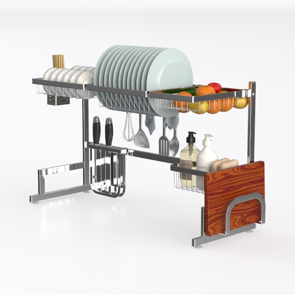 Designed to maximize kitchen space with organized utensil storage, this home essential blends functionality and style. Crafted from sleek, polished metal, it offers a clean, minimalist look, enhancing kitchen aesthetics with its streamlined structure. Perfect for modern, compact kitchens, complementing minimalist decor, it features multiple tiers: top for plates, middle for cutlery, bottom for cleaning supplies and produce, ensuring efficient, clutter-free dish drying.