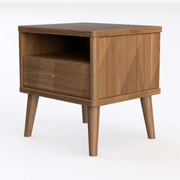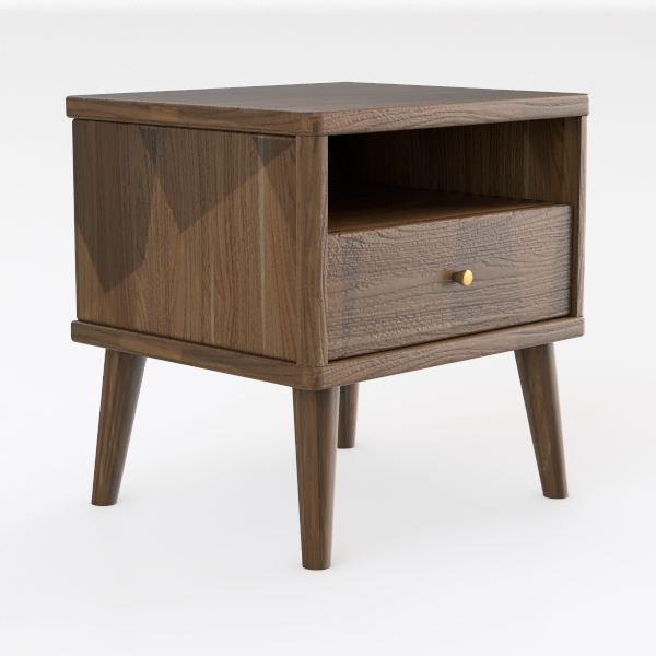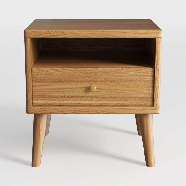 Inspired by nature and minimalist design, this wooden nightstand features warm oak with visible wood grain. Its smooth surface offers a comforting touch, while clean lines and tapering legs create an airy, uncluttered look. Ideal for minimalist or Scandinavian bedrooms, it pairs beautifully with soft linen beddings and potted succulents, with a single drawer storing bedtime essentials like books or glasses.
