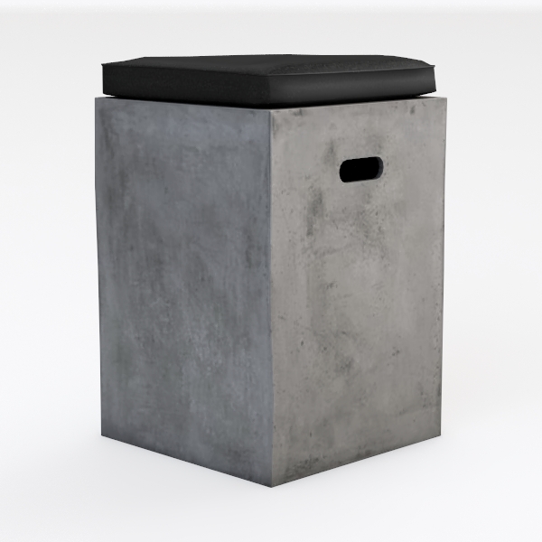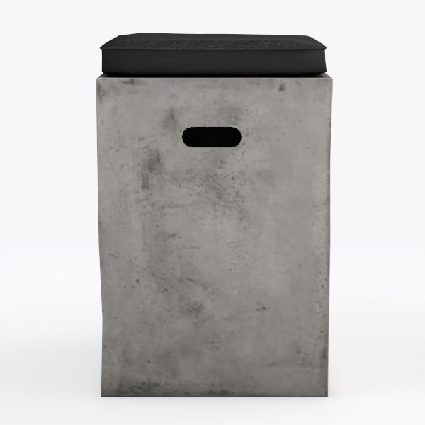 Inspired by a blend of industrial ruggedness and modern comfort, this piece merges a textured gray concrete-like base with a soft black cushion. Its clean, compact profile exudes sleek minimalism, while the rough surface and plush top create a striking tactile contrast. Ideal for industrial or minimalist spaces—living rooms, entryways, or bedrooms—paired with metal accents or wood. A side handle eases mobility, and the sturdy build ensures both functionality and style.