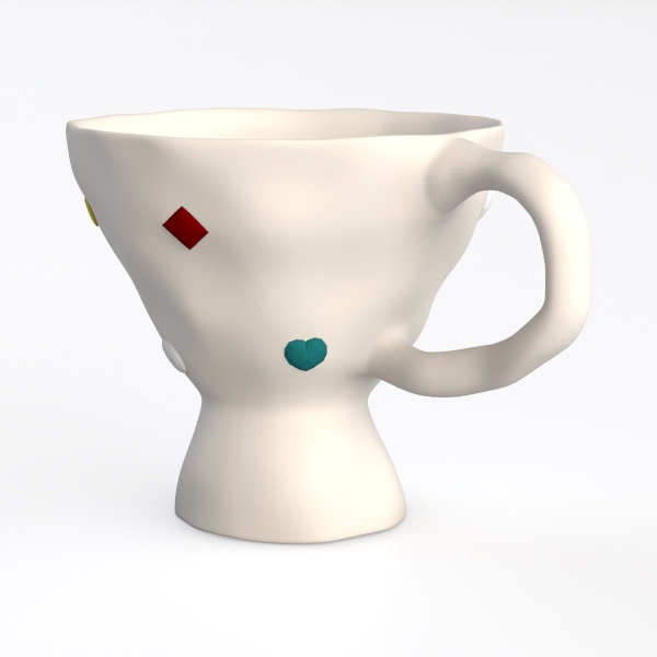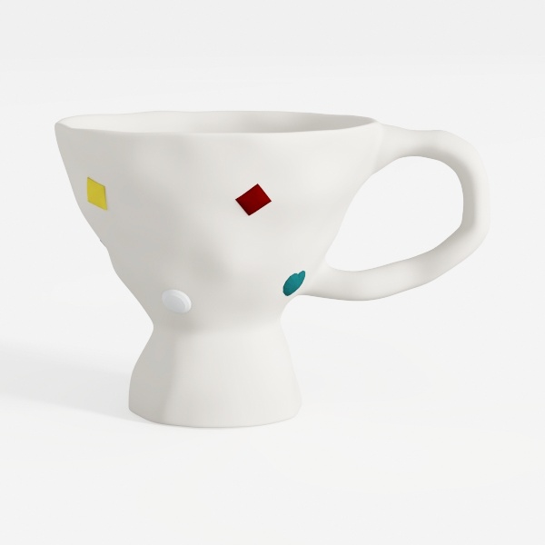 Inspired by geometric abstract art, this white ceramic piece blends sleek minimalism with playful color. Smooth, matte surfaces contrast vivid accents—a yellow square, red diamond, white circle, teal dot—while an organic, slightly irregular base adds charm. Perfect for modern or pop art-style kitchens, pairing beautifully with wooden or metalware, and features a comfortable handle for daily use.