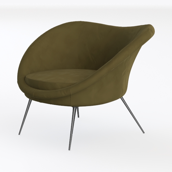 Crafted with a focus on organic comfort, this armchair draws inspiration from nature’s softest forms—think the gentle curves of a seashell or the smooth, rounded edges of a polished river stone. Its deep olive green upholstery, wrapped in a luxuriously velvety fabric, feels as inviting as it looks, with a texture that invites gentle touches and cozy seating. The visual appeal lies in its flowing silhouette: a wide, rounded seat tapers seamlessly into a gently flared back, while sleek black metal legs—thin yet sturdy—elevate the piece, creating a light, airy presence that avoids heaviness.