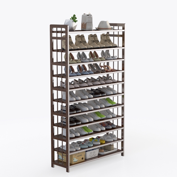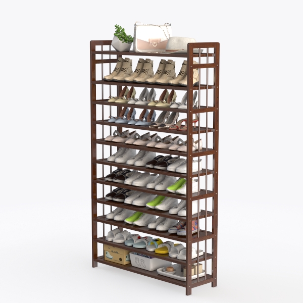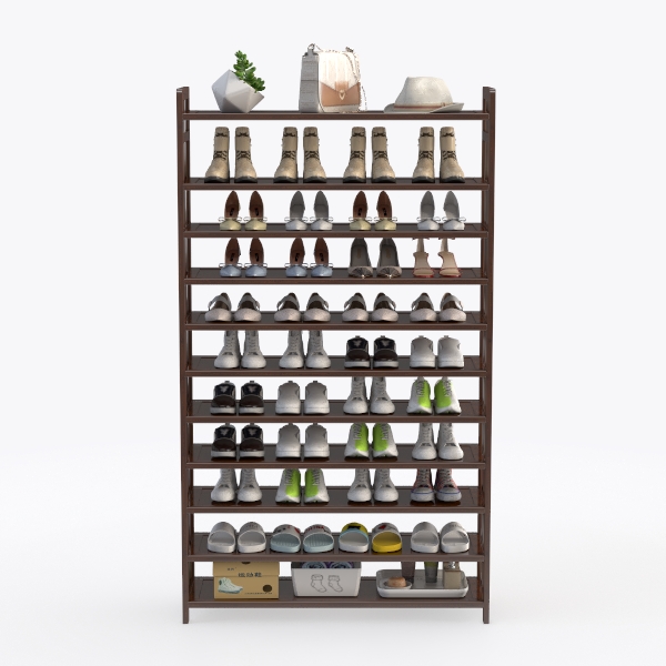 Inspired by organized daily life, this shoe rack blends function and style. Warm wood with natural grain holds boots, sneakers, loafers, plus a hat, bag, potted plant—neat, layered. Multiple tiers maximize storage, keep footwear accessible and spaces tidy, ideal for modern minimal or Scandinavian entryways/wardrobes.
