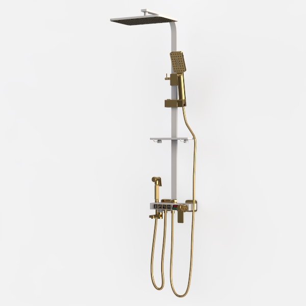 Cobbe Bathroom Shower System with Complete Combo Shower Mixer Valve, Brushed Gold Trim Kit - Seven-Spray Filtered Rain Showerhead and Handheld Set