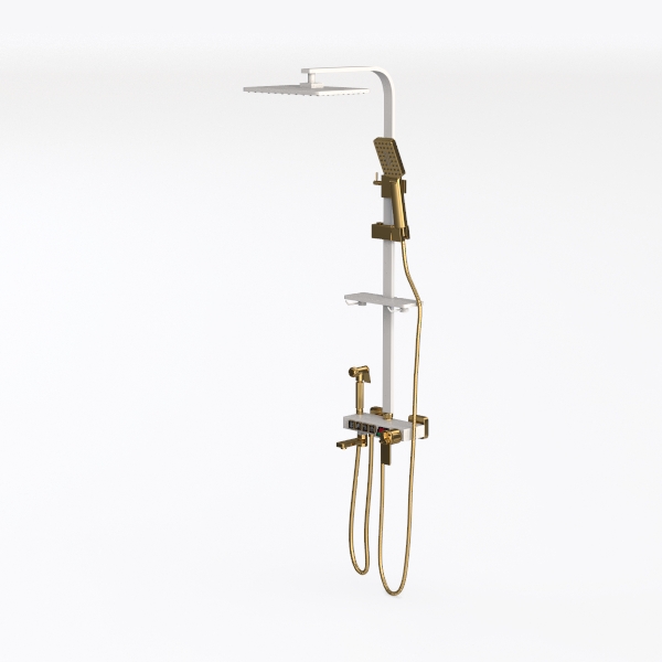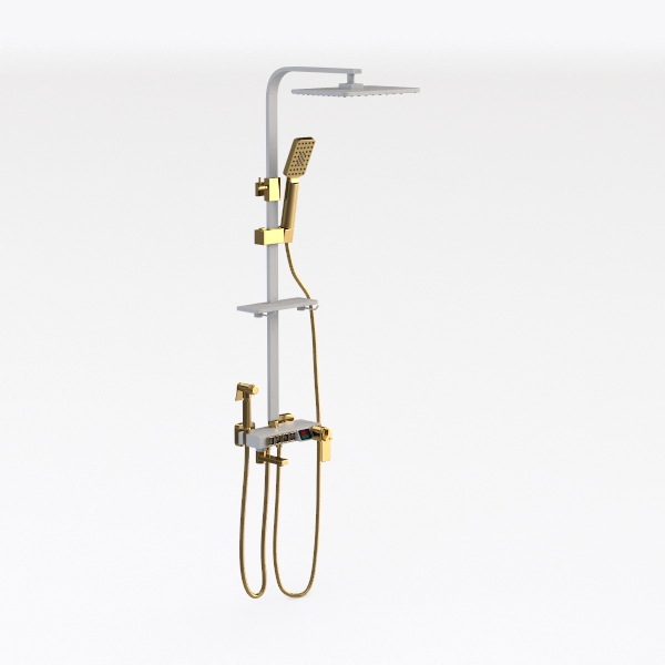 Premier Modern European Style Exposed Pipe Shower System with Single Handle Lever, 4 Inch Rainshower Head and Handheld Shower Wand, in Vintage Yellow Bronze Finish