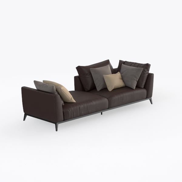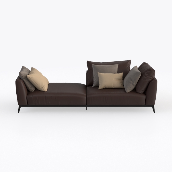 Inspired by the harmonious fusion of modern minimalism and everyday comfort, this sofa embodies a design philosophy that balances sleek aesthetics with practical usability. Crafted from a rich, deep brown leather, its surface feels luxuriously soft yet maintains structural integrity—light catches the subtle sheen, adding warmth without overwhelming the eye. Clean, unadorned lines define the frame, with low-profile arms and a compact L-shape creating a space-efficient silhouette that feels both substantial and lightweight.