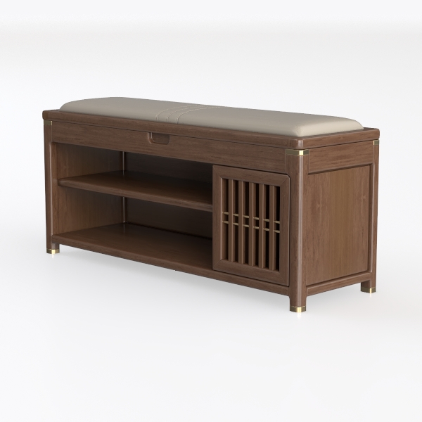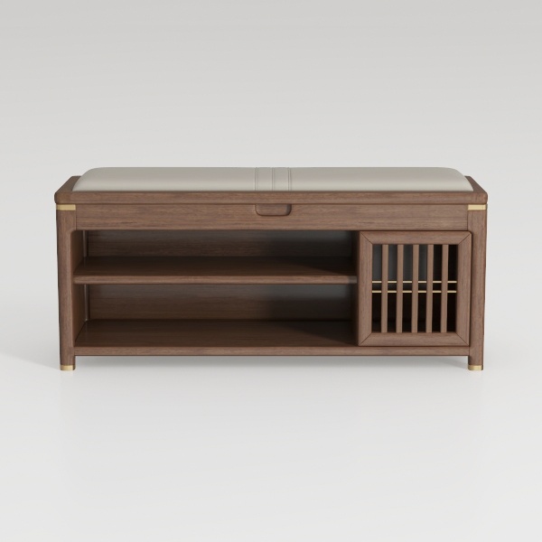 Inspired by natural wood grain and minimalist craftsmanship, this bench features warm, smooth wooden surfaces, a soft, light upholstered top, and subtle metal accents. It’s ideal for entryways or living rooms, blending modern minimalism with natural charm. With a spacious storage drawer, open shelves for daily essentials, and a slatted door design, it balances functionality and elegant aesthetics.
