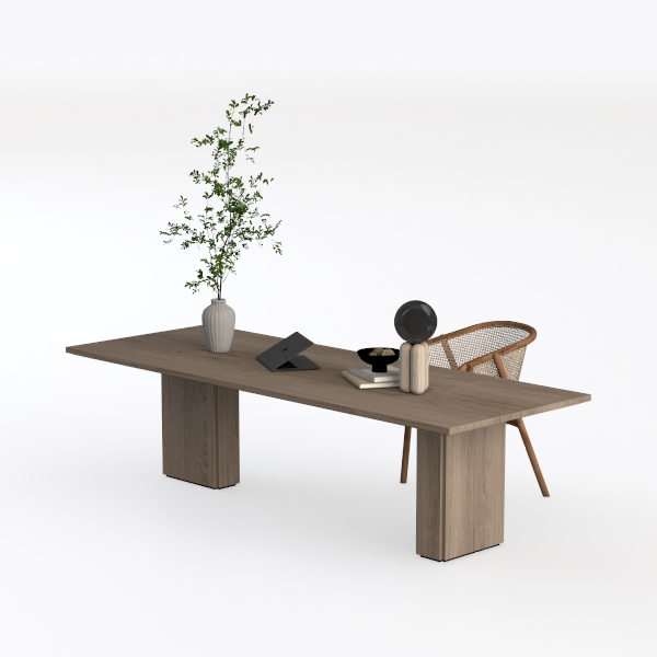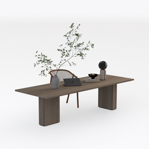 Inspired by natural minimalist aesthetics, this wooden table showcases warm, textured grain and a smooth matte finish, paired with a woven chair. Its generous surface provides ample space for work or reading, ideal for modern minimalist or Scandinavian living rooms/studies. The soft, earthy tones create a cozy, clutter-free vibe, blending functionality with serene visual appeal.