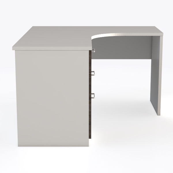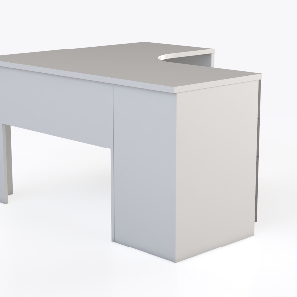 Inspired by minimalist design to maximize space, this L-shaped desk features a smooth matte gray surface and warm wood accents on the drawer front. Sleek metal handles add subtle elegance, balancing simplicity with tactile texture. Ideal for modern home offices, pair with neutral chairs and geometric decor. Spacious top and deep drawers offer ample storage, supporting both work and leisure needs.