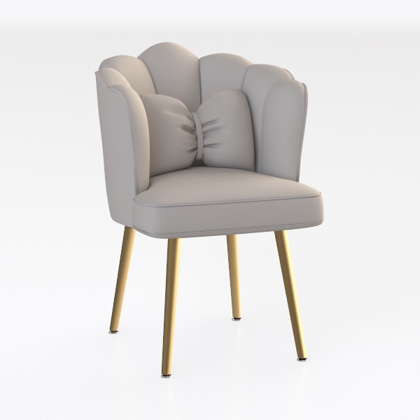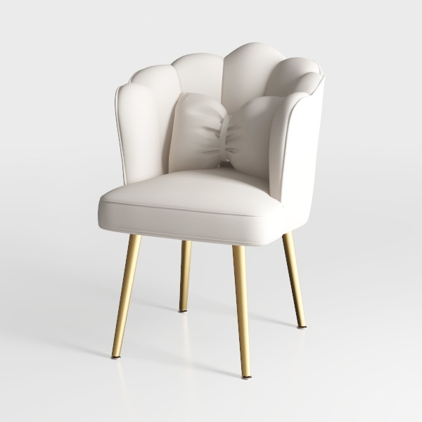 Inspired by blooming flowers, this chair features a soft, smooth white upholstery with a petal-shaped backrest and a bow-shaped pillow, exuding an elegant, refined look. Its sleek gold legs and generous seat depth ensure exceptional comfort, making it ideal for modern-luxury living rooms, complementing marble coffee tables and metallic accents.