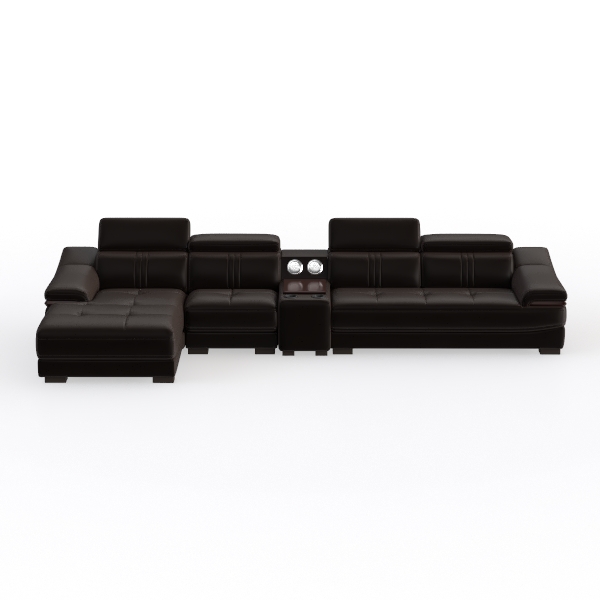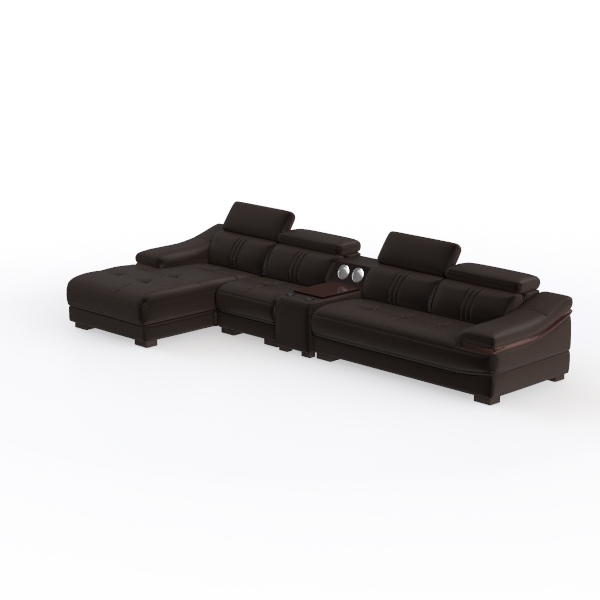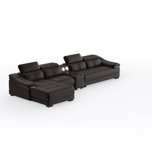 Valletta Italian Nappa Leather L-Shaped Sectional Sofa with Right Chaise, Adjustable Headrests, Modern Living Room Furniture (Dark Brown)