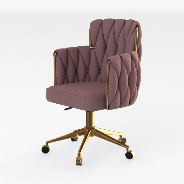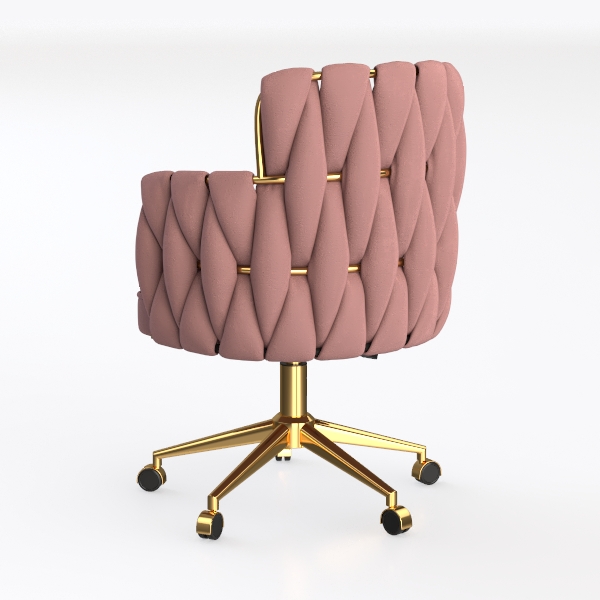Blending vintage charm with modern comfort, this chair features soft, quilted pink upholstery and a polished gold metal frame. The structured diamond-patterned back and curved armrests create a striking silhouette, while smooth-rolling casters and a sturdy base ensure functionality. Perfect for a modern-luxe living room or home office, pairing beautifully with marble tables and metallic accents.