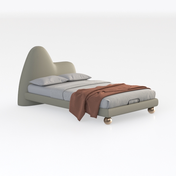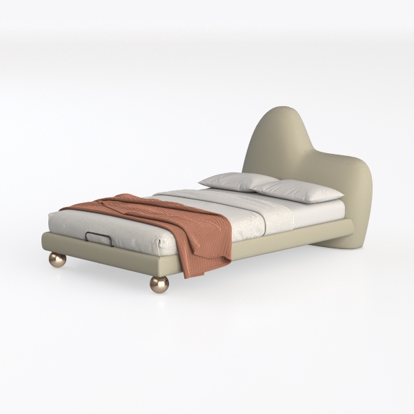 Designed with organic curves inspired by flowing water, this bed features soft, neutral-toned upholstery and polished brass legs for a warm, modern vibe. Perfect for modern minimalist or Scandinavian bedrooms, pair with wooden nightstands and linen bedding. The contoured headboard offers gentle back support, while the low-profile frame maximizes floor space.
