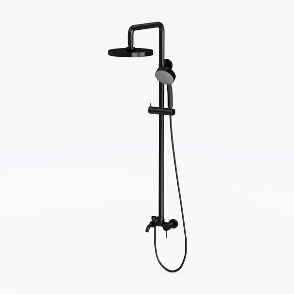 OSL Black 2-Way Shower Column, Adjustable Height from 83 to 120 cm, incl. Hose, Hand Shower and Round Sprayer
