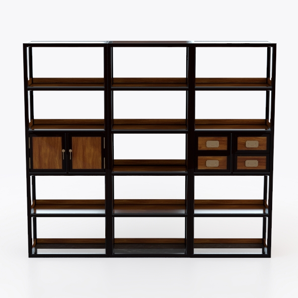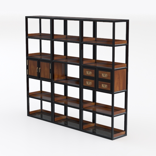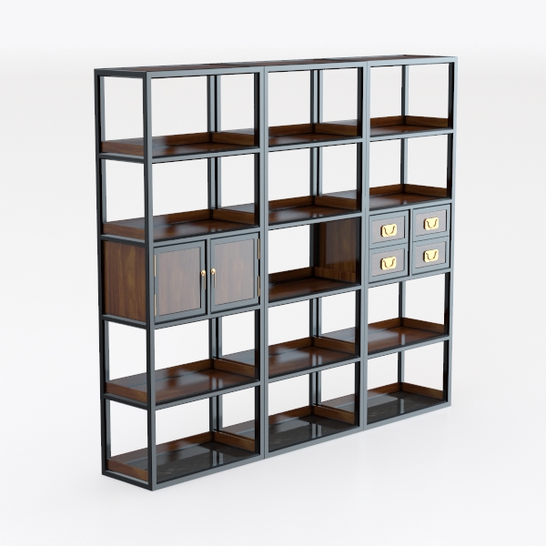 Inspired by industrial and mid-century fusion, this bookshelf blends sleek black metal frame with warm wood grain—cool sturdiness and natural warmth. Spacious open shelves and hidden drawers offer ample storage, perfect for modern minimalist or industrial living rooms, complementing marble surfaces and warm decor.