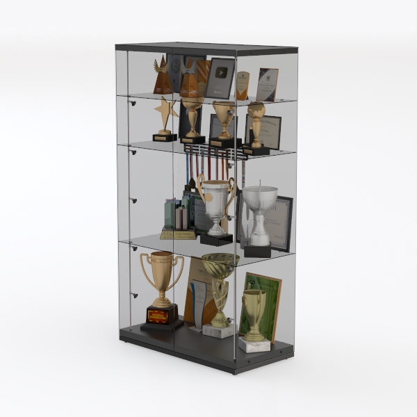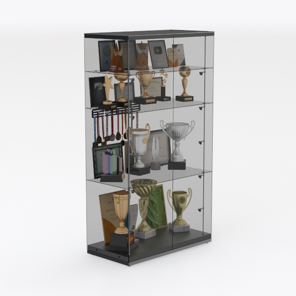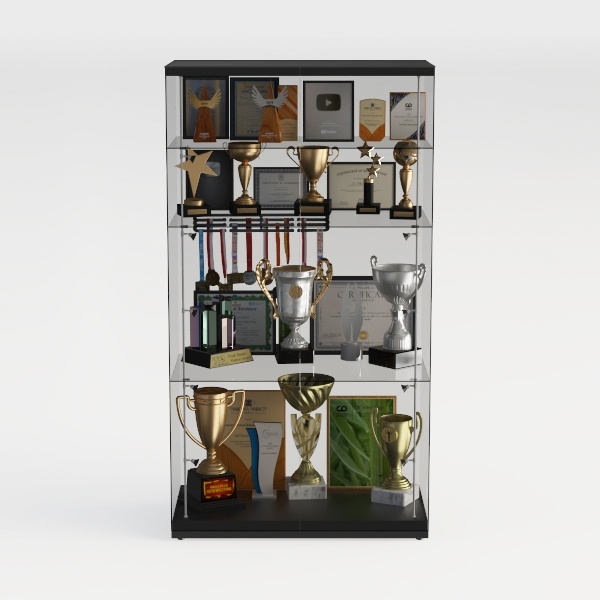 Designed to celebrate achievements, this sleek display cabinet features a minimalist black base and clear glass shelves, creating a sophisticated showcase for cherished awards. Clear glass allows unobstructed views, while the smooth black base adds a modern touch—metallic trophies and framed certificates catch light, blending elegance with accomplishment. Perfect for modern home offices or living rooms, it elevates spaces with functionality and decor, highlighting personal milestones. Spacious compartments securely hold items, keeping them dust-free and prominent, a stylish, practical centerpiece for honoring success.