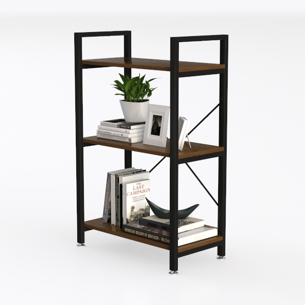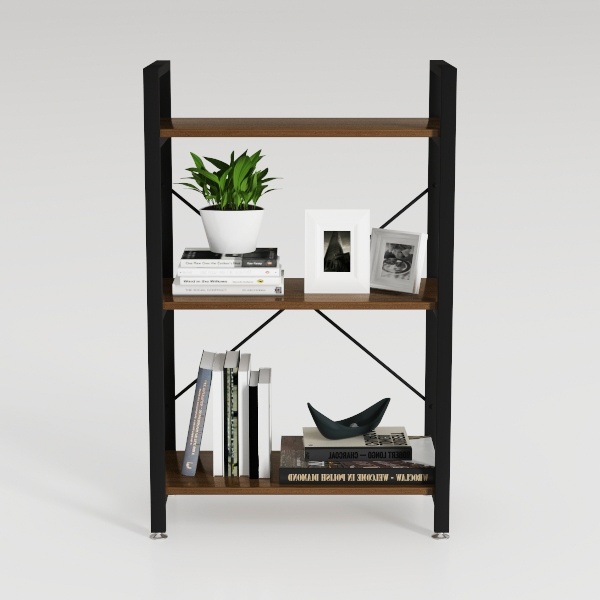 Inspired by merging natural warmth with industrial sleekness, this shelving unit blends smooth wooden shelves and angular black metal frames. The wood offers a tactile, earthy texture, while the metal adds a cool, structured contrast, creating balanced visual harmony. Ideal for modern minimalist or industrial-style living rooms, it pairs beautifully with potted plants and framed photos, elevating any space. Multiple tiers provide ample storage for books and decor, combining functionality and aesthetic charm.