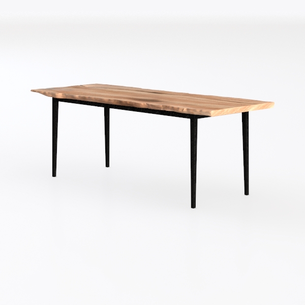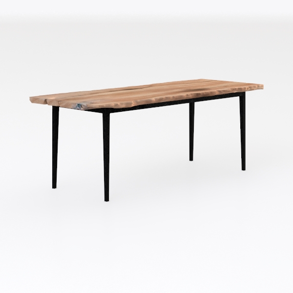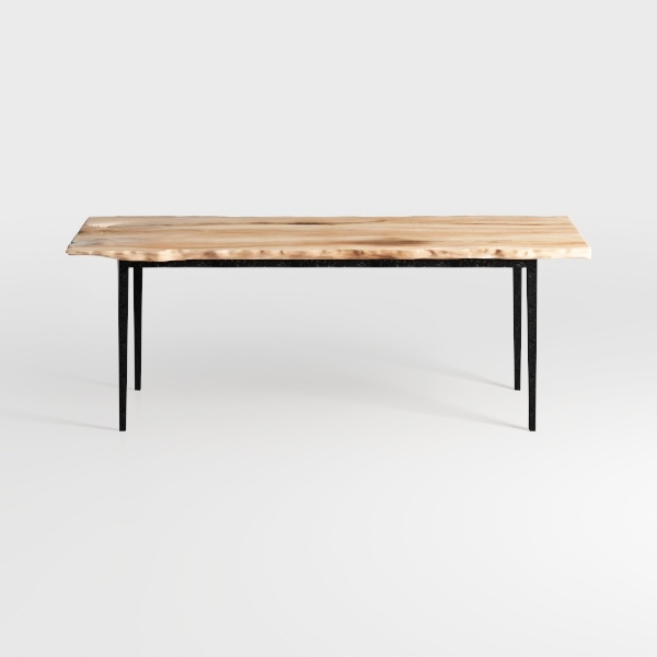 Inspired by natural wood's organic beauty, this piece retains raw, unpolished edges, harmonizing with sleek matte black metal legs. The warm, tactile wooden top contrasts with crisp metal lines, blending nature and modernity. Ideal for minimalist living/dining spaces, it pairs with linen sofas and greenery, enhancing a cozy, earthy vibe. Ample surface space holds essentials, while sturdy legs ensure lasting stability.