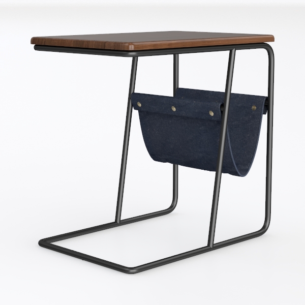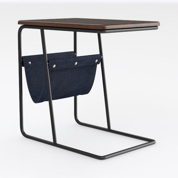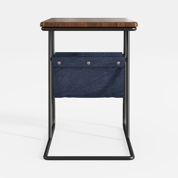 Inspired by repurposed vintage industrial design, this side table blends warm wooden warmth with soft denim texture. The smooth wooden top contrasts gently with the sturdy matte black metal frame, while the roomy front pocket adds practical, tactile charm. Ideal for modern industrial or minimalist spaces, pair with leather sofas and marble accents to enhance its blend of rustic and sleek appeal. Lightweight yet stable, it holds drinks, remotes, and small essentials effortlessly.
