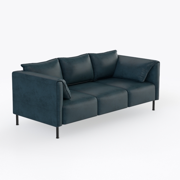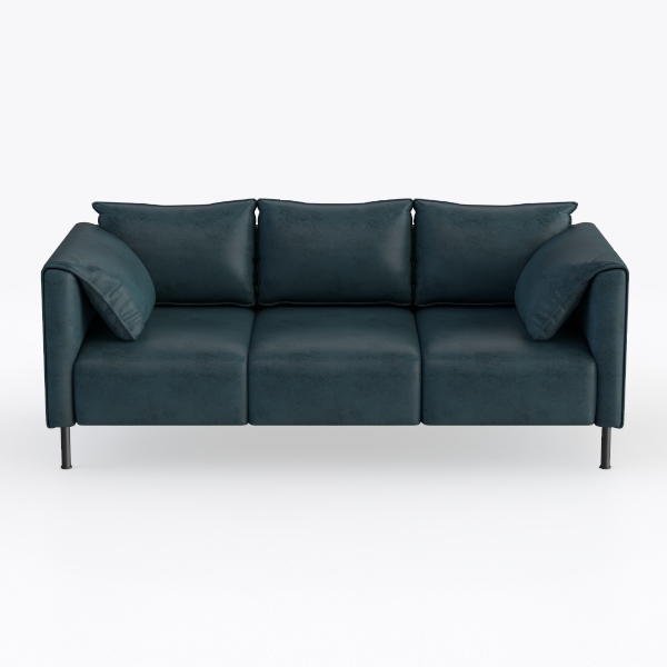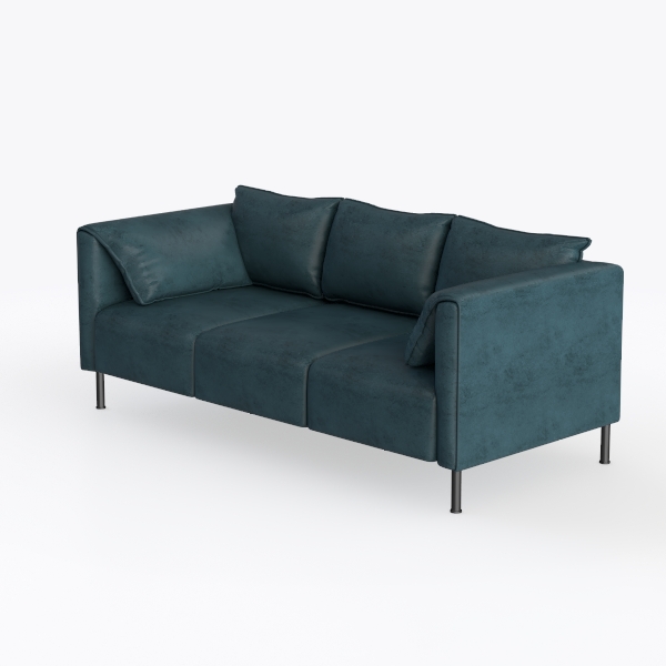 The upholstery—rich, deep teal—boasts a subtle, velvety texture that invites gentle touch: smooth yet slightly plush, it feels both premium and inviting, while the color itself carries a sophisticated depth, avoiding the harshness of brighter hues. The silhouette is deliberately uncluttered: clean, straight armrests frame a wide, three-seat layout, with subtly rounded edges softening the angles, creating a piece that feels both intentional and approachable.