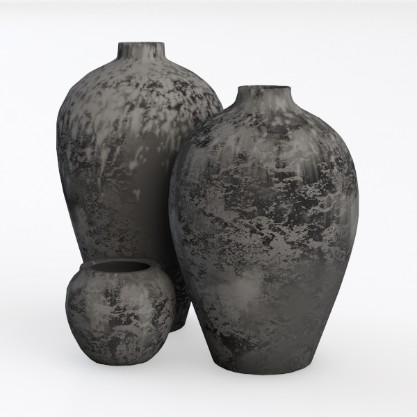 Inspired by raw natural textures, these three vases feature rough, matte surfaces with layered gray tones, exuding understated elegance and depth. Their varied sizes—tall, medium, and small—make them ideal for modern minimalist or Scandinavian living rooms, where they hold fresh blooms or dried arrangements, adding organic charm and balancing spaces with timeless simplicity.
