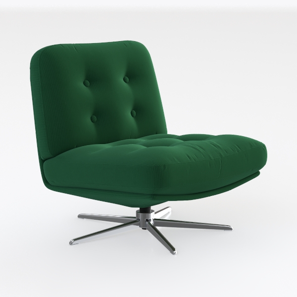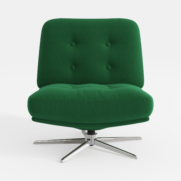 Inspired by mid-century modern design, this armchair blends retro charm and contemporary simplicity. Its soft, plush corduroy in rich emerald green, with subtle tufted details, feels warm and inviting. Ideal for modern minimalist living rooms or retro workspaces, paired with wooden tables and metallic accents. Spacious seat and swivel base ensure exceptional comfort, perfect for relaxed reading or casual chats.