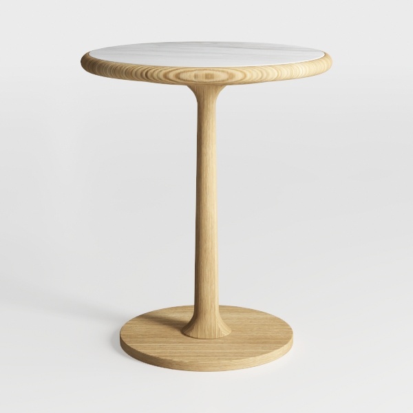 Crafted with nature-inspired curves, this side table blends organic warmth with sleek minimalism. The light oak base has soft, smooth grain, offering tactile comfort, while the glossy white marble-like top adds a cool, refined contrast. Ideal for modern Scandinavian or contemporary living rooms, pair it with a linen sofa and potted plant for balanced charm. A stable, slender stem and weighted base ensure sturdiness, perfect for holding drinks or decor.