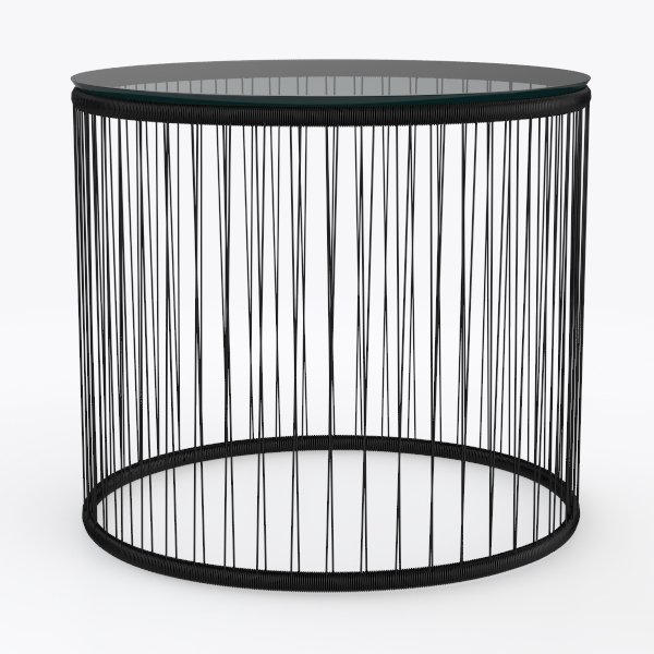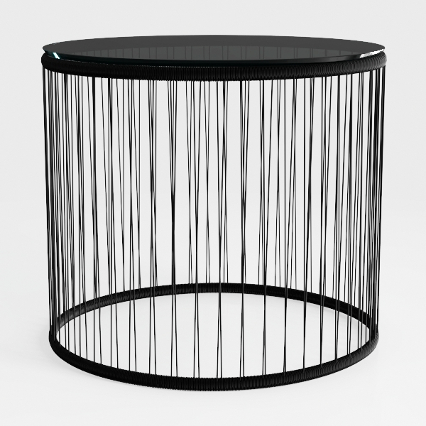 Inspired by organic fluidity, its curved frame features sleek black metal strands coiled and stretched into a light yet sturdy base. The cool, polished dark metal surface and clear glass top create a delicate yet grounded feel, adding spaciousness. Ideal for modern minimalist, Scandinavian, or contemporary living rooms, pair with soft textiles and warm lighting. A generous circular top offers ample space for drinks/decor; the open frame keeps the area light and uncluttered.