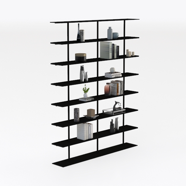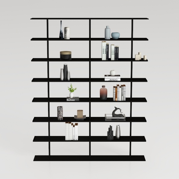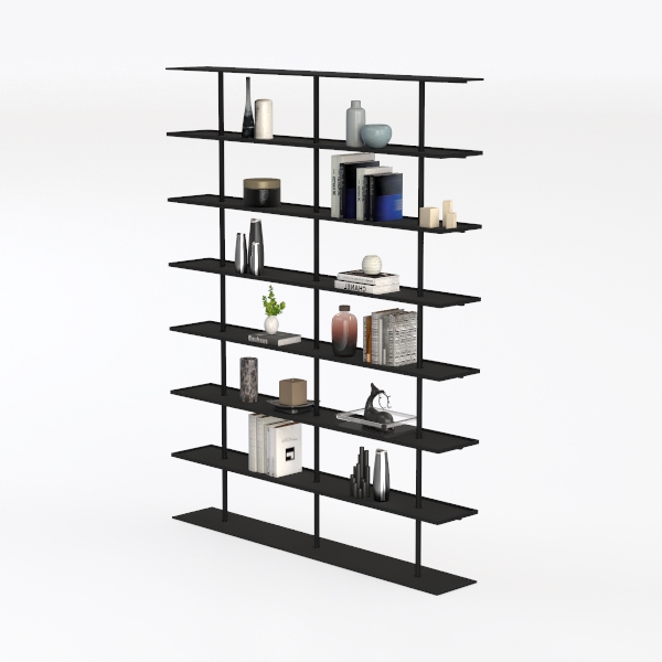Crafted with a minimalist aesthetic, drawing inspiration from clean architectural lines, this black metal shelving unit features a sleek, cool matte frame. Floating shelves create light, airy visual flow, ideal for modern, Scandinavian, or industrial living rooms/home offices. Generous, staggered levels offer ample space to display books, decor, and vases, balancing storage and style seamlessly.