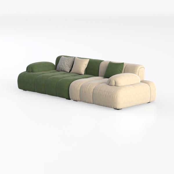 This sofa merges organic inspiration with modern minimalism, where structure and softness coexist. Its design draws from the harmony of natural forms—think the curves of dunes and the muted tones of coastal foliage—blending geometric modular blocks with flowing, rounded edges to create a piece that feels both intentional and warm.