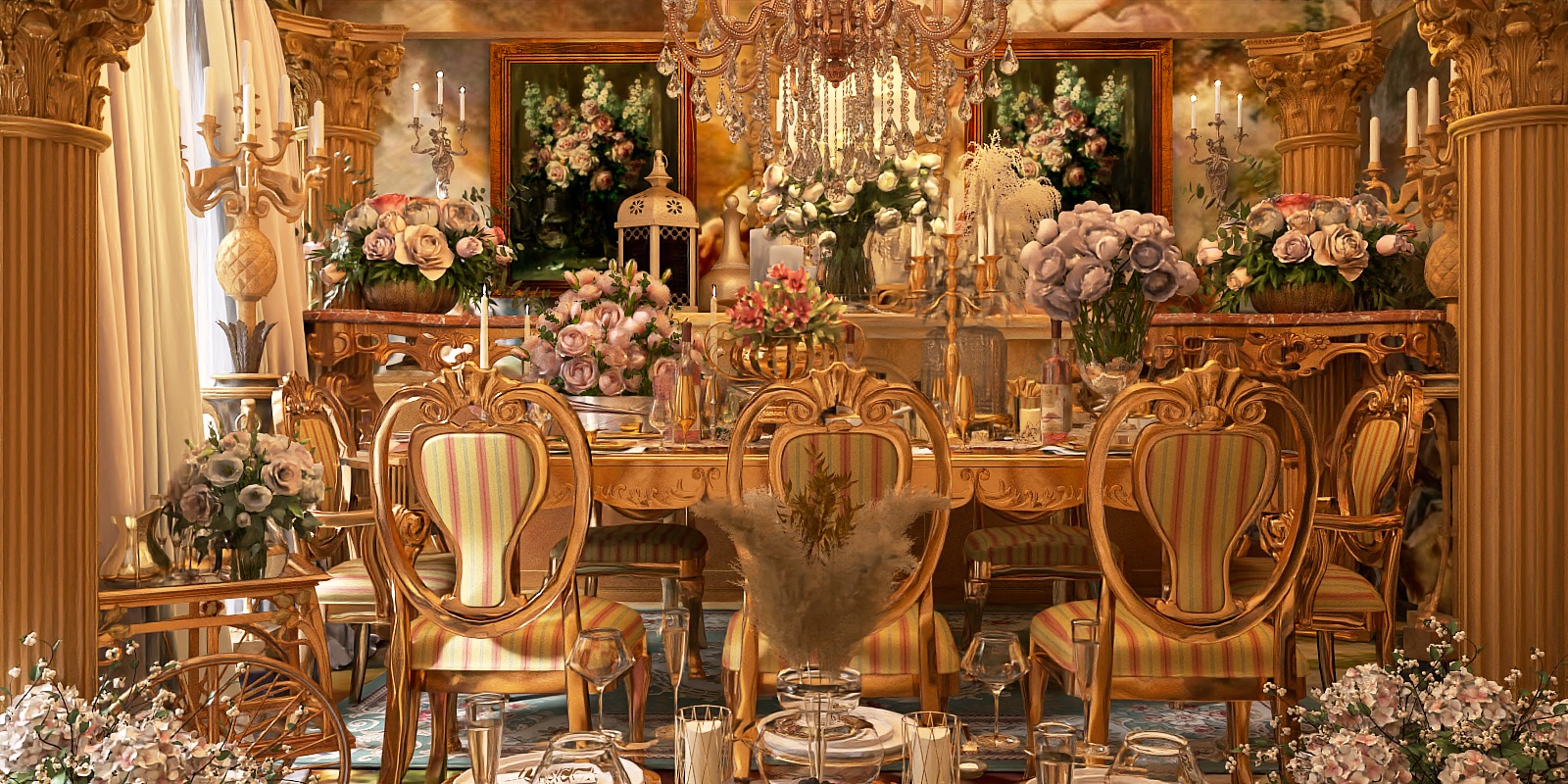 Inspired by classical Baroque artistry, this elegant console table features a gold-plated carved frame with intricate scrolls and floral motifs, exuding opulence. The polished marble top, in warm red and white veining, adds a smooth, cool contrast. Ideal for a grand foyer or elegant living room, it elevates traditional and luxury decor, complementing dark wood and crystal chandeliers. Ample surface space caters to daily essentials, with a sturdy base ensuring stability and timeless charm.