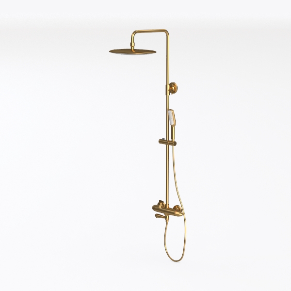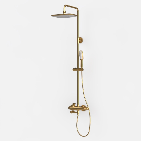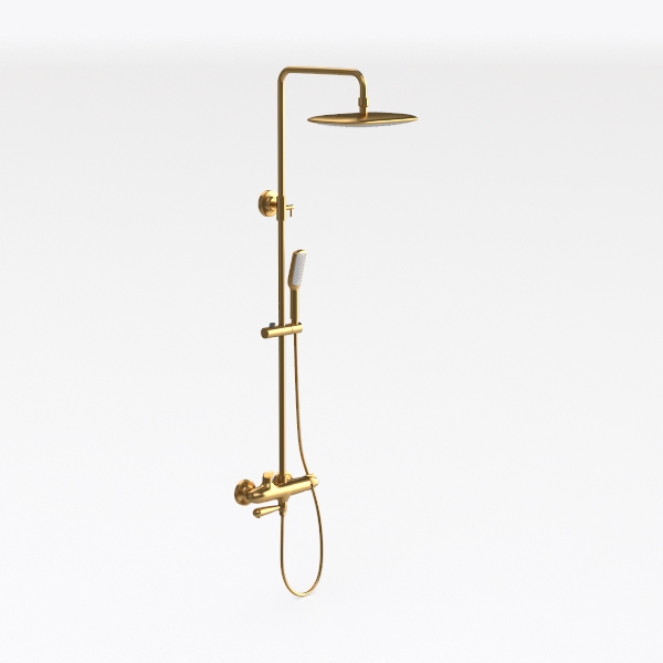 Premier Modern European Style Exposed Pipe Shower System with Single Handle Lever, 4 Inch Rainshower Head and Handheld Shower Wand, in Vintage Yellow Bronze Finish