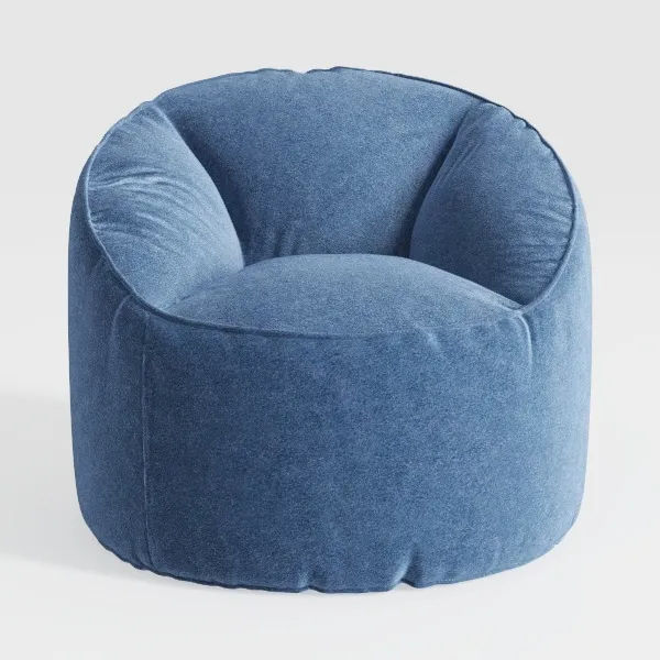 This charming armchair takes cues from the desire for unconstrained relaxation, designed to infuse casual elegance into everyday rest spaces. Its soft, rounded shape is wrapped in a muted indigo blue fabric, a hue that feels both serene and inviting, casting a gentle, calming glow in any room. The texture is surprisingly rich—like petting a soft cloud, with a velvety surface that catches light subtly, adding depth to its otherwise smooth silhouette.