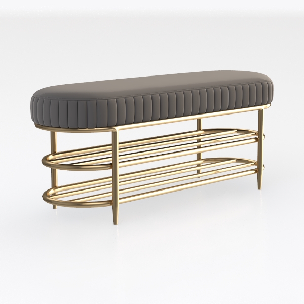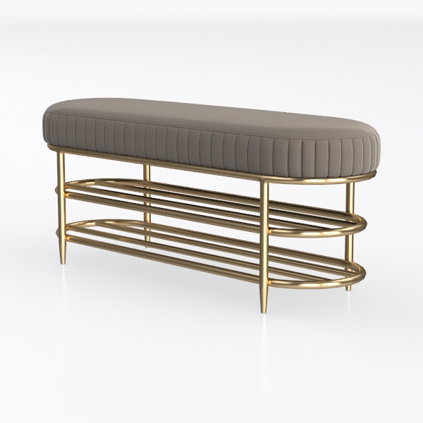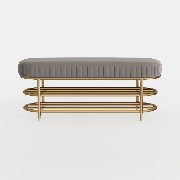 Linen Bench with Storage-Entryway Shoe Storage with Tufted Padded Seat,Gold Mental Frame Ottoman Bench for Bedroom Entry Window Mudroom Living Room,Beige