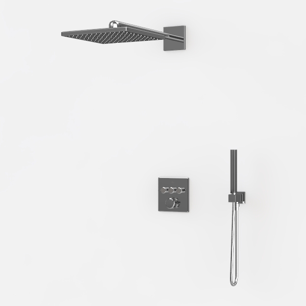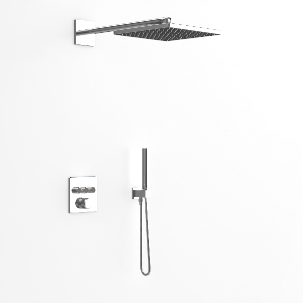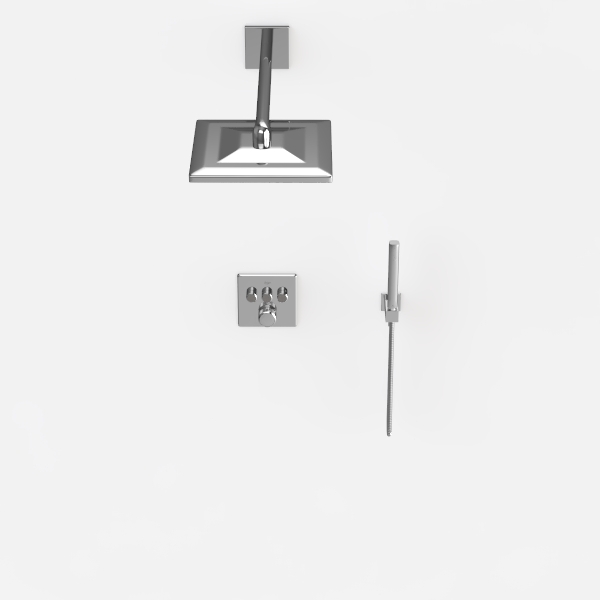 Shower System Modern Rain 8 inches Brass Faucet Set With Valve and Diverter Shower Mixer With Handheld High Pressure Square Rainfall Shower Valve (12'' Ceiling Mount, Chrome Polished)