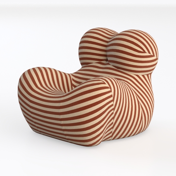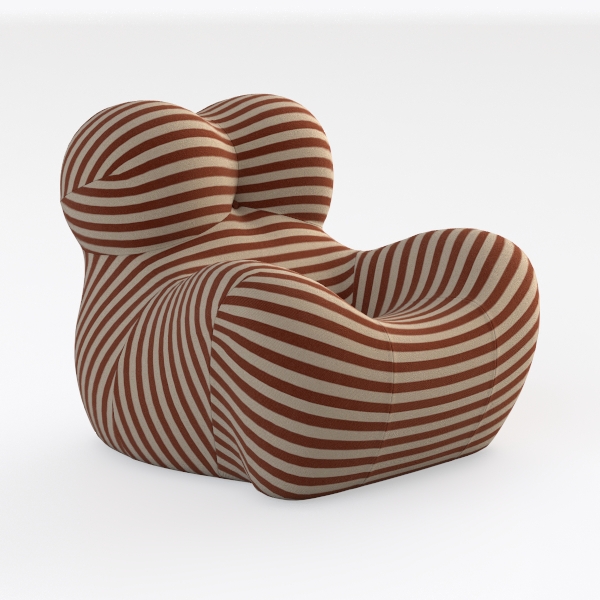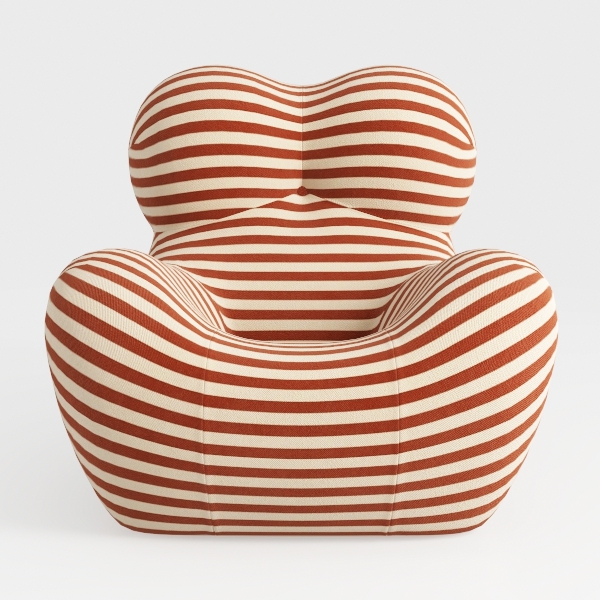 The chair radiates a harmonious blend of organic inspiration and mid-century warmth, drawing from soft, undulating natural forms—think smooth river stones or billowing clouds—to craft a shape that feels both sculptural and deeply inviting. Its textured fabric, adorned with bold, alternating terracotta and cream stripes, catches light gently, creating a rhythmic, eye-catching pattern that adds energy to any room. The sinuous curves of the backrest and wide, deep seat cradle the body, balancing plush softness with subtle structural support, making it ideal for long hours of relaxation.